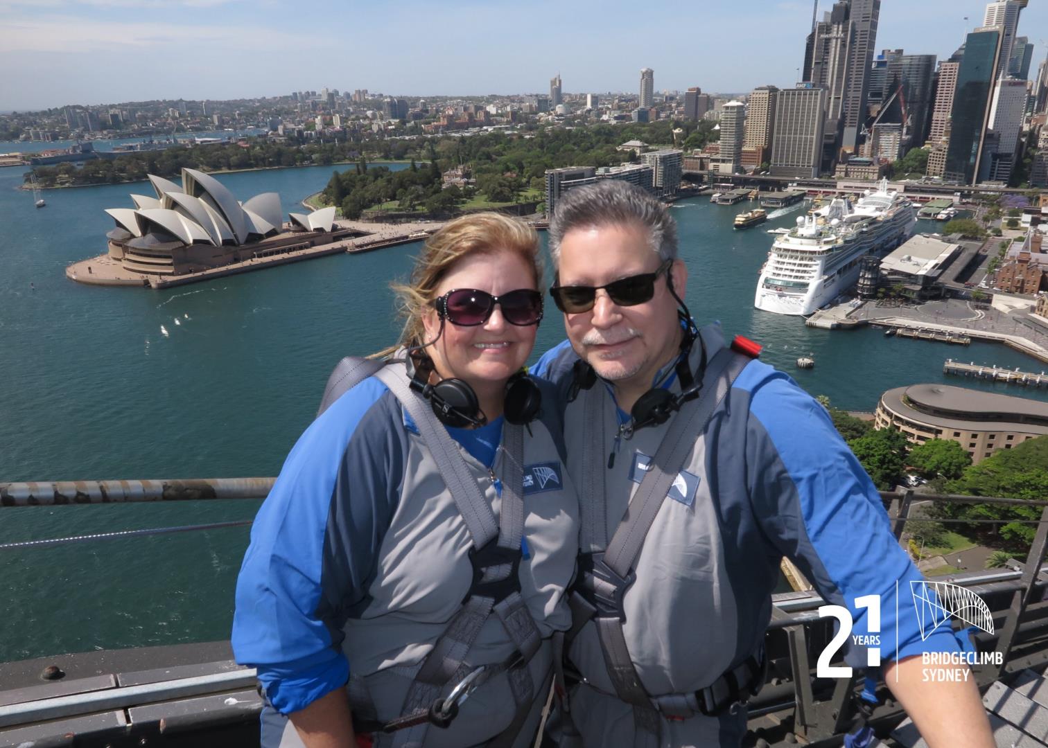 Day two, we were up bright and early and headed to the Sydney Harbor Bridge for our Bridge Climb. My husband is deathly afraid of heights, but he agreed to do this with me because he knew I really wanted to do it and it was AMAZING!! Such a great experience by a top notch organization. They really did a great job in preparing you for the climb and giving you the confidence that you would succeed on the climb. We had a great group of 14 people from all around. We met 3 people who would be on the same cruise as us and we saw them every day on the cruise (Kristen, Suzy & Eric from Boston), we even ran into them on a ferry in Auckland after the cruise. We also met a wonderful man from Australia who was climbing the bridge for the first time and he knew Bill was afraid of heights and I was a little apprehensive that the climb might be too fast paced, we chose to "pull up the rear" of the group so we would not hold anyone up and he was always looking back at us to make sure we were OK. It really was not as bad or as physically challenging as I had made it out to be in my head & I was so happy that we got to experience this.